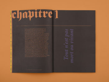 Des monstres feuillus, des champignons par dessous la jupe, de l’amour en altitude et en chaussettes, une plaidoirie contre Sainte-Beuve (ou presque), du saucisson comme vous n’en avez jamais vu, du rififi dans la traduction, de l’infra-ordinaire, des lettres effacées, de la typographie éclairée, un intérieur surpeuplé, des pourparlers non-éducatifs, une brochettes de feignasses, un précis de philosophie saltoïste, un où est Charlie sans Charlie mais plein de poésie, des souvenirs d’Algérie, les débuts d’une recherche prometteuse, un trip musical collé conté, de la gravure sur papier publicitaire, des UniversiTerres en colère, des rouages explosifs, un traité du Nananère, du noir et blanc, des synonymes, de la poésie, une partouze, un Tribunal des mots et bien d’autres choses encore.